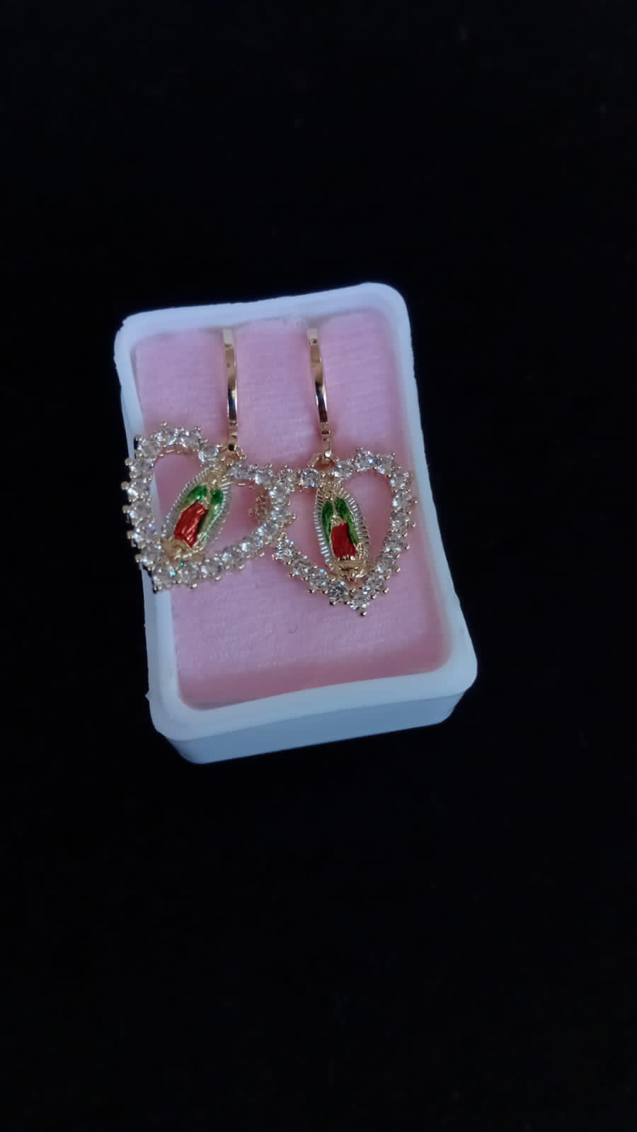 Diseño: Virgen de guadalupe en forma de corazon con piedra zirconia