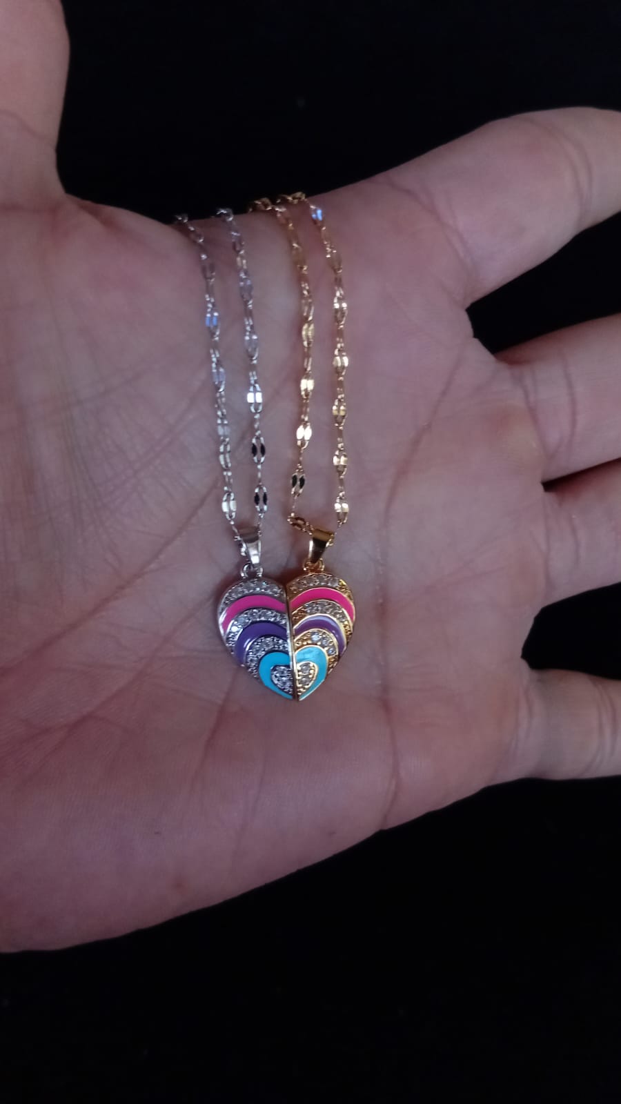 Diseño: Dijes para parejas con iman en forma de corazon con piedra zirconia