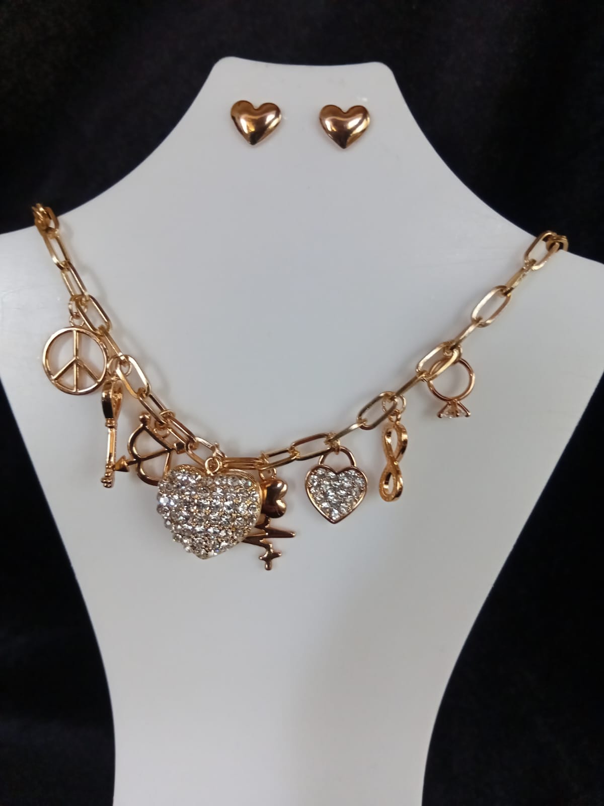 Tamaño: Gargantilla 45cm, dijes mediano, aretes pequeños