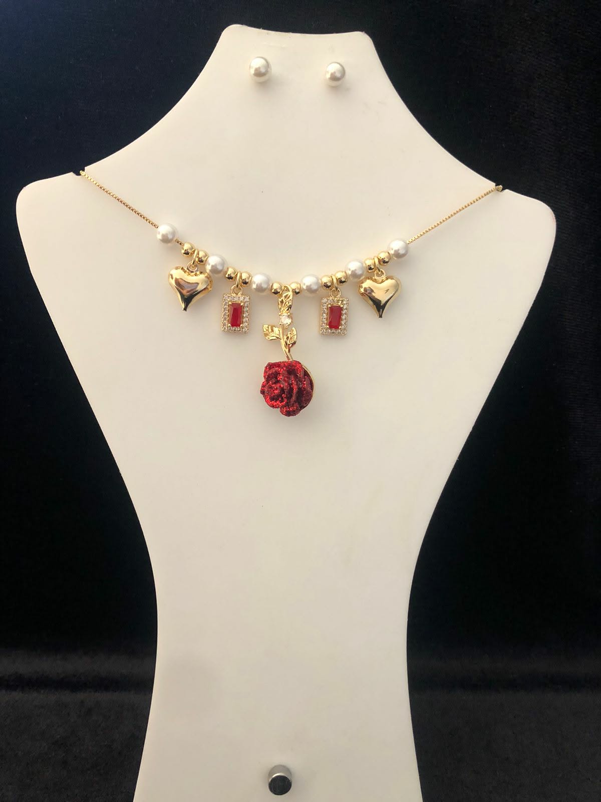 Tonalidad: Dorado con zirconia blanca y esmaltado rojo