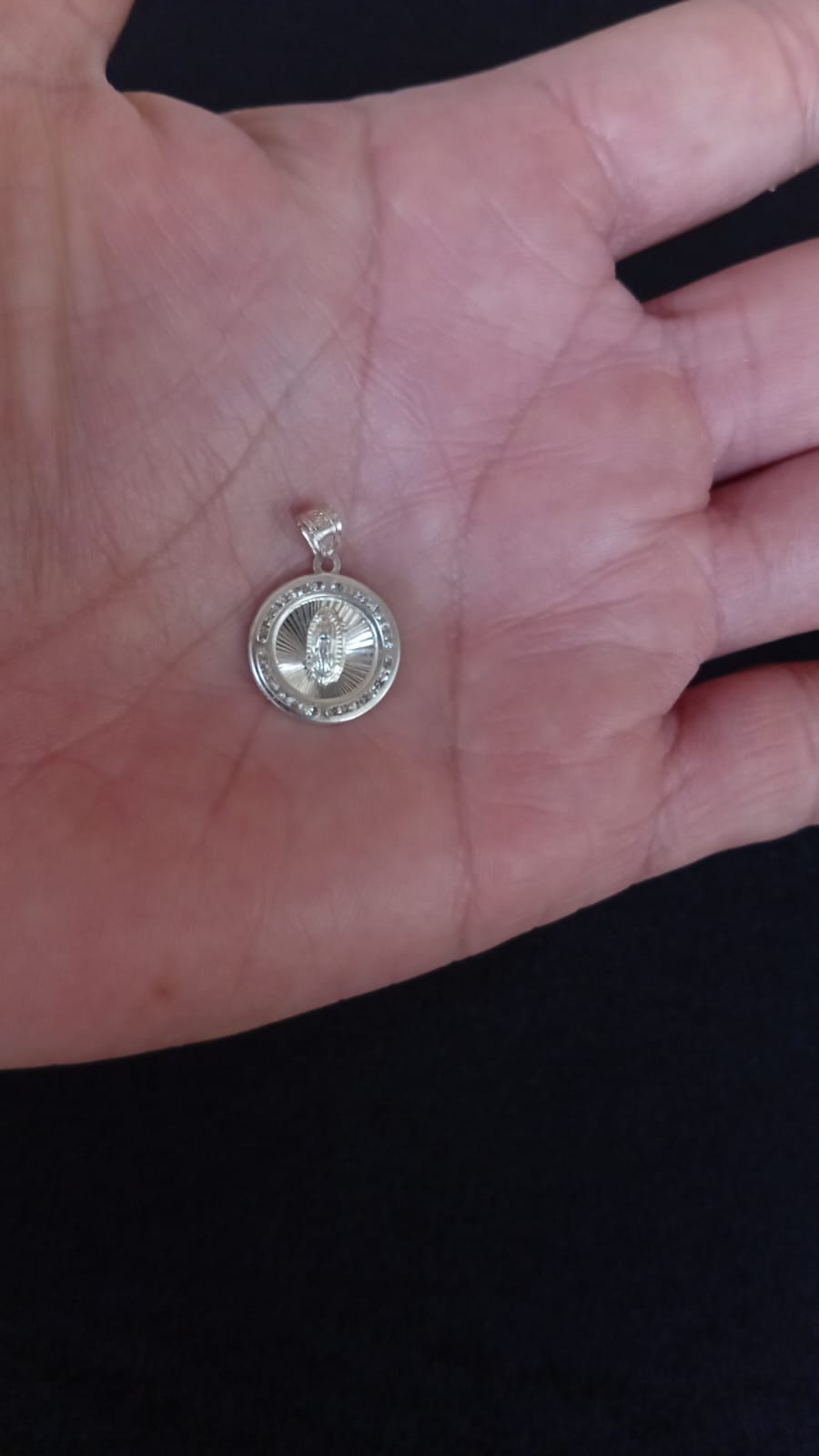 Diseño: Virgen de guadalupe con piedra zirconia en forma circular