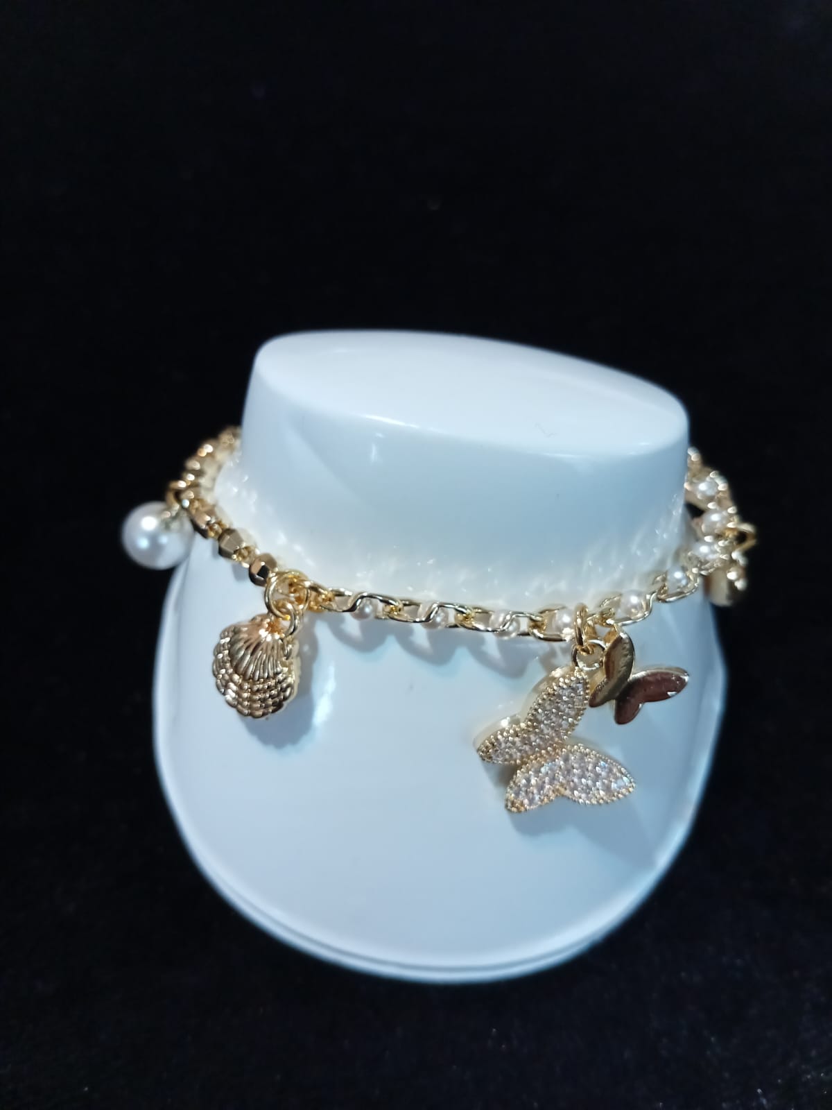 Diseño: Mariposas y concha de mar con piedra zirconia y perla