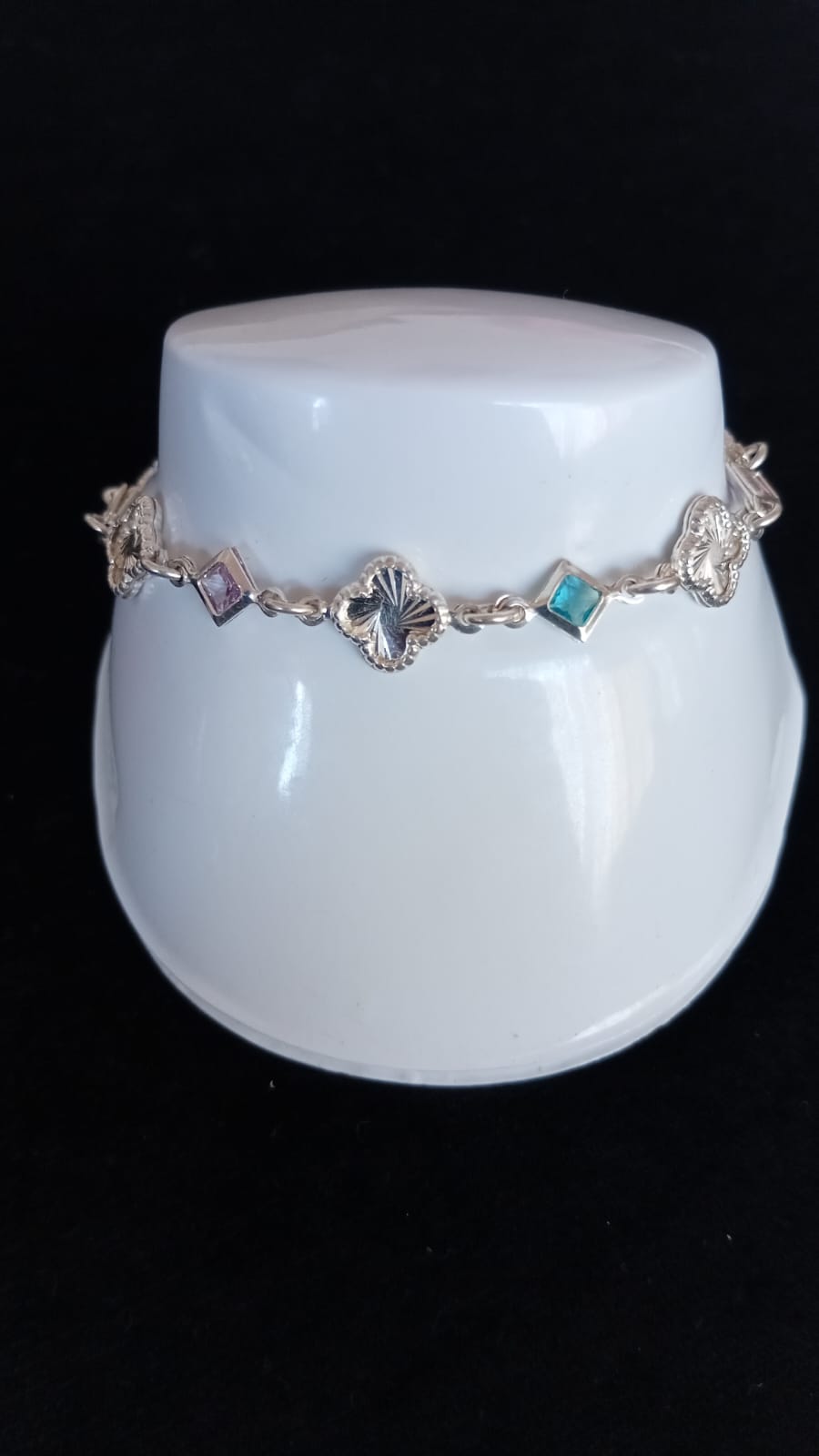 Tonalidad: Plateada con zirconia multicolor